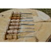 sada 8 kusů dlát z kvalitní nástrojové oceli třídy 19 3xx (19 8xx).. Skladbu jednotlivých dlát v rámci sady lze upravit dle vašich požadavků. Rukojetě jsou standardně soustružená, typická pro naše nástroje, ale respektujeme zvyklosti každého řezbáře. Jsme připraveni vyhovět vašim požadavků. Rukojetě jsou buď v přírodní podobě, nebo je můžeme namořit. Dláta v sadě jsou v dřevěné krabičce, s přepravní ochranou ostří a připravena k okamžitému použití.